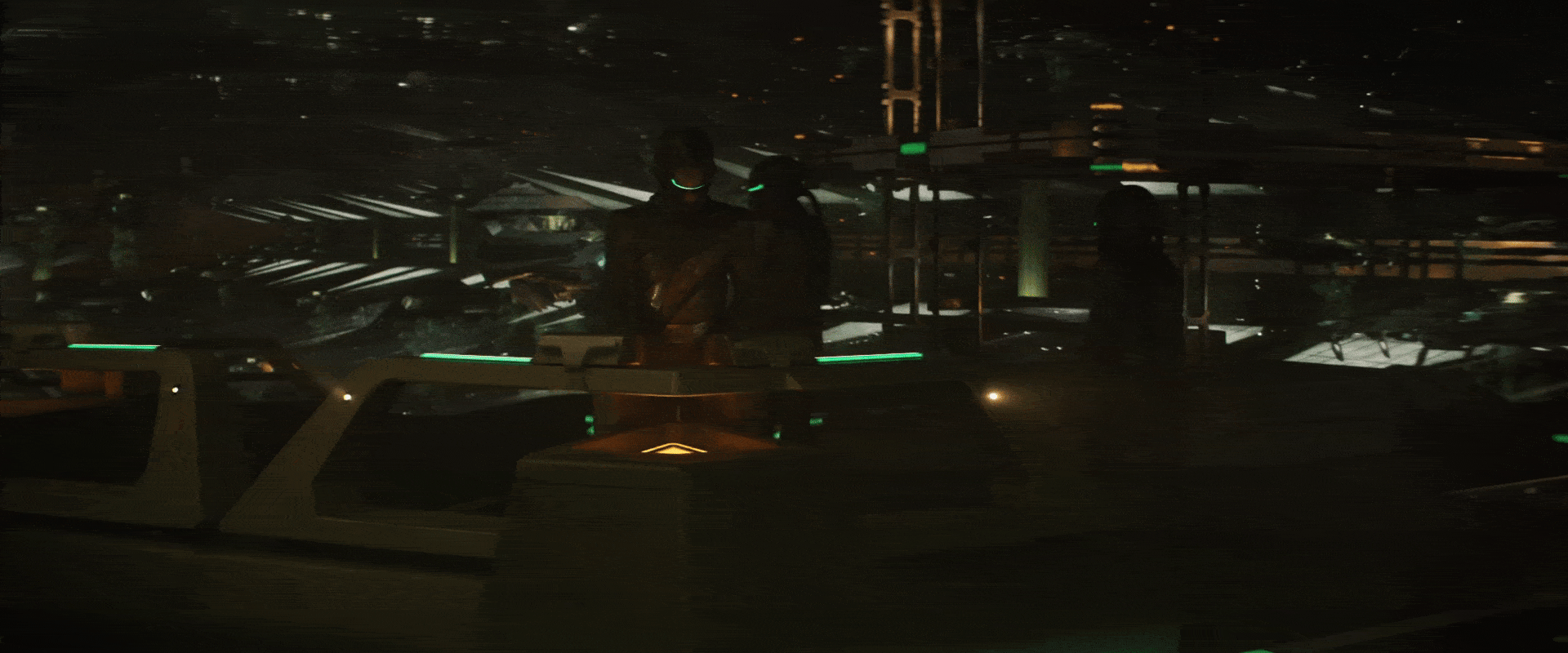This was the first time in which we had to implement crowds at such a large scale. Guards were placed thruoughout the entire environment, moving and engaging with each other. But, they also had to respond to director cues and perform specific actions. With our previous experience using flipbooks in Q’Mau, we knew this would be one viable solution. We set up a shoot on the Volume (with the wall set to the perfect keyable blue), with an actor in costume, and had him perform all the necessary actions. Simultaneously, we scanned and built a cg version of the guard. We placed 100’s of these guard elements throughout the environment as flipbooks, mixing single and double guard elements to make them seem like they were talking to each other. For the Bridge area of the ship, we needed the guards to stomp their weapons on cue, so we used a system in UE which would quickly cycle through the flipbook animations.